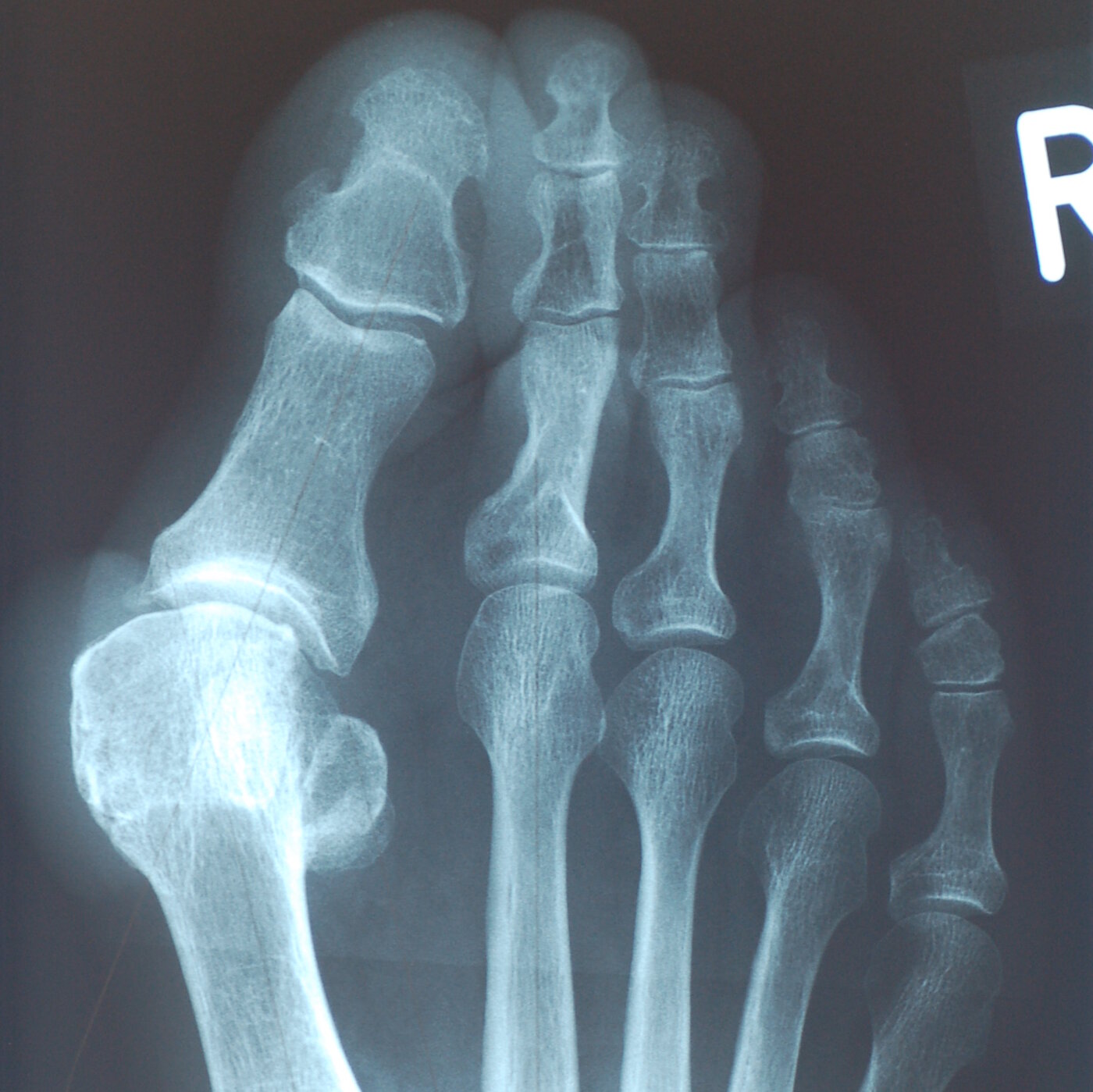 Unter Hallux valgus (auch Großzehenballen genannt) versteht man eine Abweichung der Großzehe nach kleinzehenwärts. Nicht eine Knochenanlagerung sondern das herausgetretene Mittelfußköpfchen bildet den „Ballen“. Neben erblicher Vorbelastung begünstigt enges Schuhwerk die Fehlstellung.